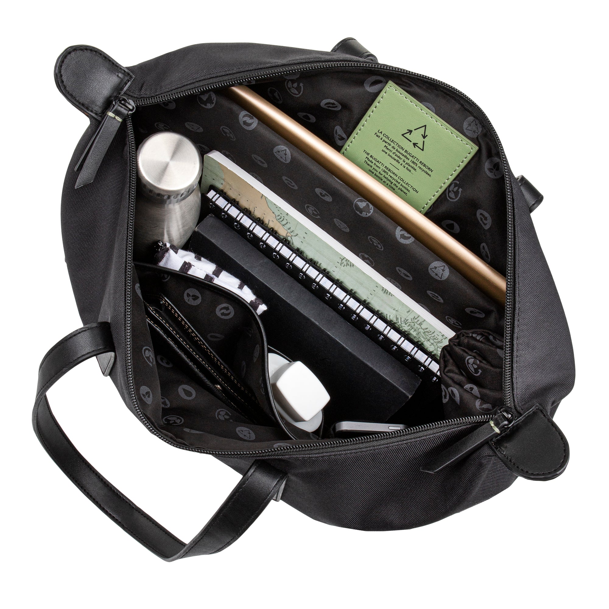Bugatti presents its 1st eco-conscious product line: The Reborn Collection. Designed with the planet in mind, the 6 lightweight pieces included in this line are made from water-repellent polyester solely composed of recycled plastic bottles. With minimalist lines and maximum functionality, this collection combines practicality with timeless style. All designs include RFID protection, to keep your personal data safe from identity theft. We are proud to introduce a collection that reflects our engagement to bring eco-conscious and fashionable pieces to life.